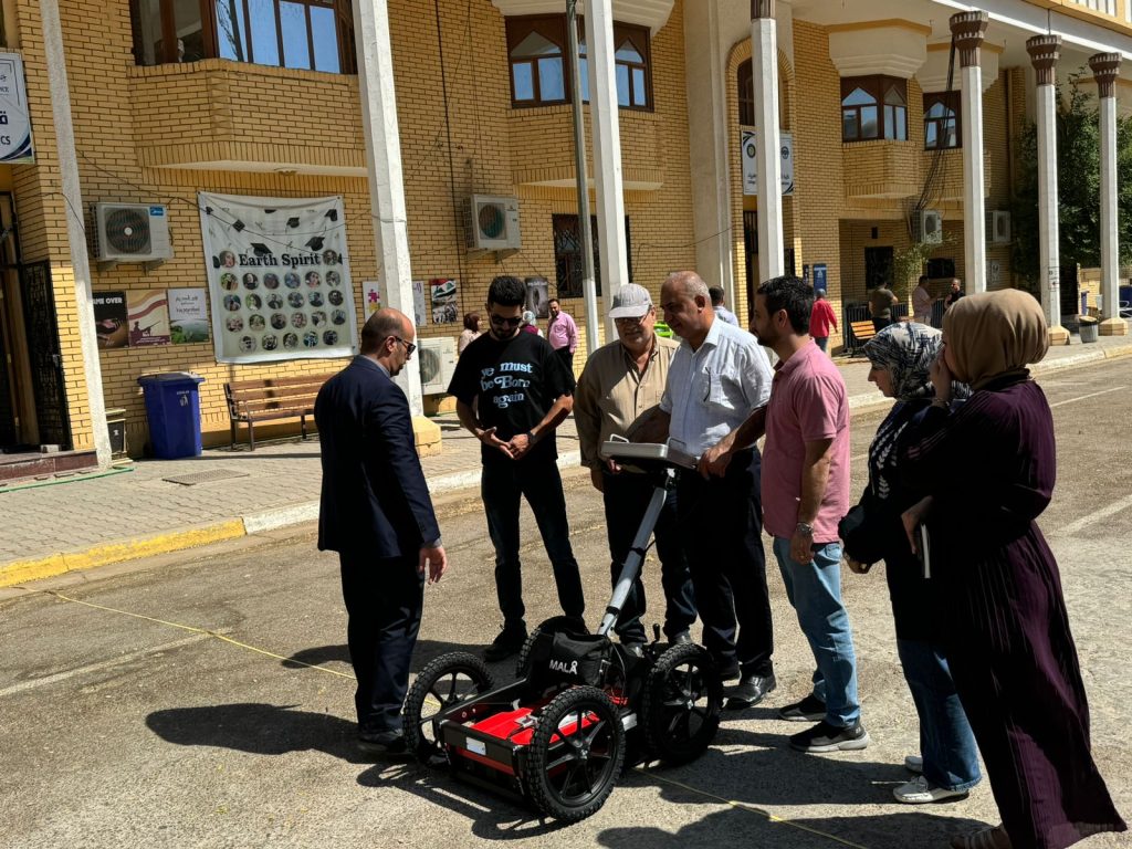 بإشراف السيد عميد كلية التحسس النائي والجيوفيزياء أ.م.د. احمد عباس حسن، وبالتعاون مع الشركة المجهزة، نظم قسم الجيوفيزياء ورشة تدريبية متقدمة لتدريب التدريسيين على استخدام جهاز GPR المتخصص في الكشف الجيوفيزيائي والمسح الأرضي. يأتي هذا التدريب في إطار تطوير مهارات الكادر الأكاديمي وتعزيز قدراتهم في استخدام أحدث التقنيات العلمية، التي تساهم بشكل مباشر في رفع مستوى الأبحاث والتطبيقات العلمية.
