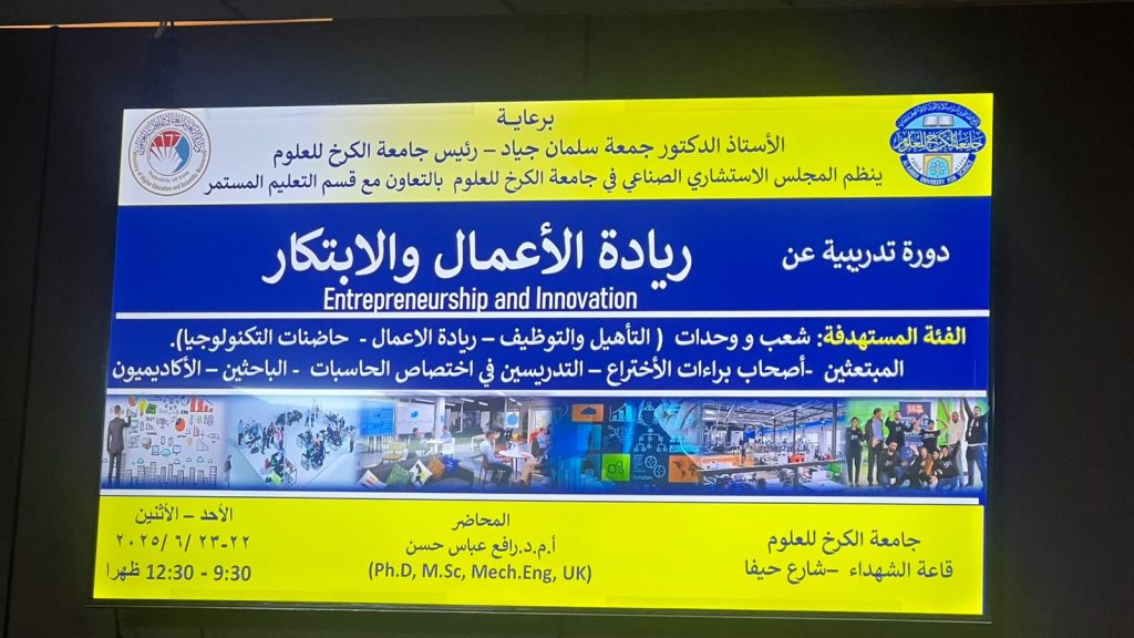 جامعة الكرخ للعلوم تنظّم دورة متخصصة في ريادة الأعمال والابتكار
